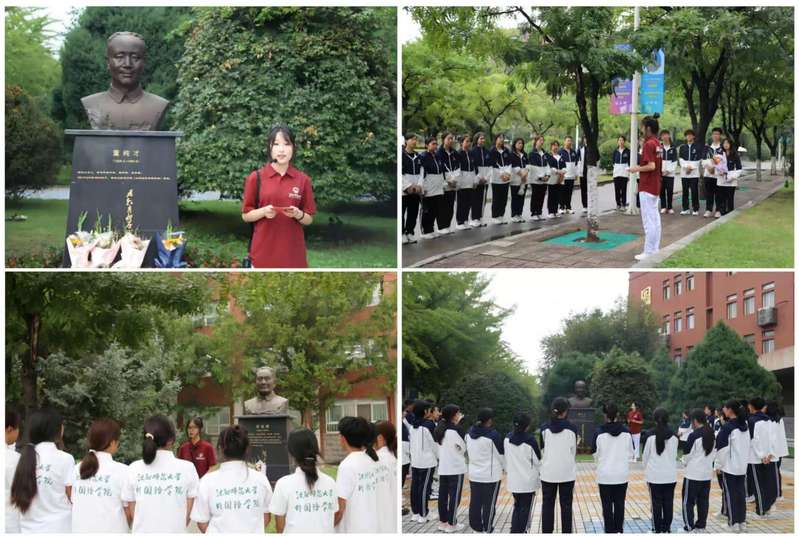 董纯才、吴伯箫和车向忱三位教育家,为122cc太阳集成的创立、建设和发展作出了历史性贡献,他们的雕像以时代广场为中心,分别坐落在图书馆、汇文楼及知行楼门前。来自不同专业的师范生队伍井然有序地穿梭于三座雕像间,依次听取他们“教育救国”“排除万难”“艰苦创业”的奋斗故事。